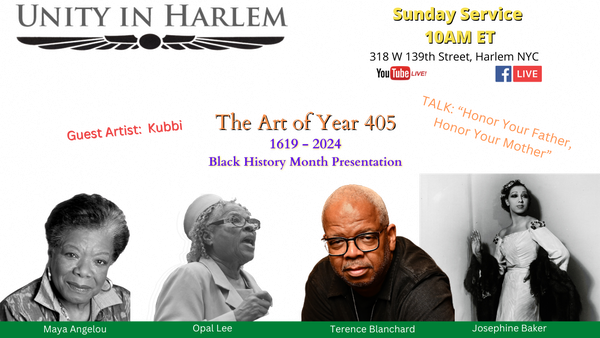 JOIN US in person (at 318 W 139th St. lower level, Harlem, NYC) or online live on YouTube and Facebook. Our service includes music, meditation and a meaningful message.