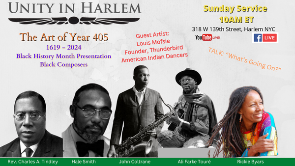 Our service includes music, meditation and a meaningful message. With song selections by guest artist Louis Mofsie, Founder, Thunderb!rd American Indian Dancers; and musical director Marie Poncé, a special Black History Month presentation honoring black composers (Ali Farke Toure, Hale Smith, Rickie Byars, Charles Tindley, John Coltrane) and a talk from Rev. Carol J. Hunt, this service is here to be inspiring, uplifting and motivating.