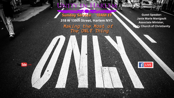 JOIN US in person (at 318 W 139th St. lower level, Harlem, NYC) or online live on YouTube and Facebook. Our service includes music, meditation and a meaningful message from our guest speaker Janie Marie Manigault, Associate Minister, Unity Church of Christianity