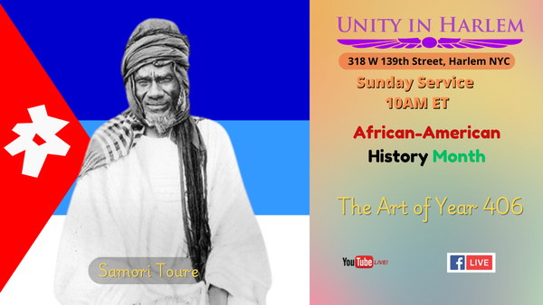 celebration with a presentation on Samori Toure, who was a Malinke Muslim cleric, military strategist, and founder of the Wassoulou Empire. A deeply religious Muslim of the Maliki school of religious jurisprudence of Sunni Islam, Toure resisted French colonial rule in West Africa . Don’t miss this inspiring presentation by Rev. LeRoy Whethers. Join us live in person or online!