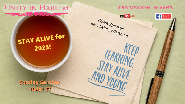 JOIN US in person (at 318 W 139th St. lower level, Harlem, NYC) or online live on YouTube and Facebook. Our service includes music, meditation and a meaningful message from Rev. LeRoy Whethers