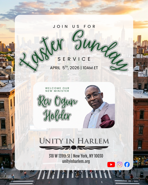 In his first Easter service at Unity In Harlem, Rev. Ogun Holder will share his talk -"Easter Revolution!"